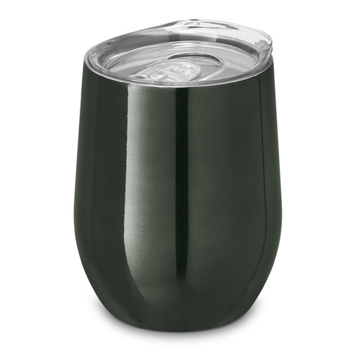 Product Description: Double wall stainless steel vacuum insulated thermal travel cup. Sliding lid and capacity up to 400 mL. Supplied in a box. 88 x 112 mm
