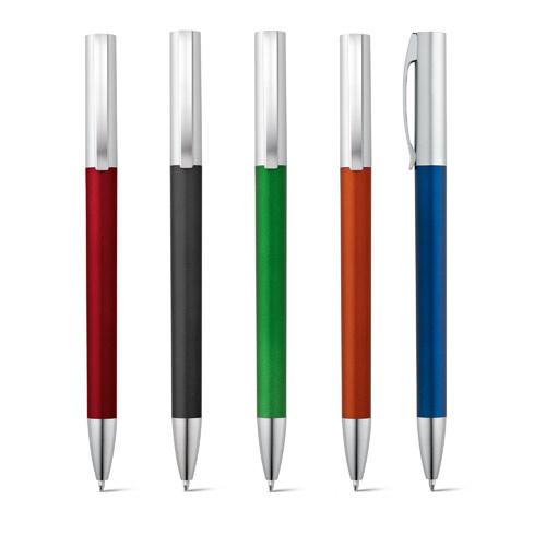 Product Description: ABS ball pen with twist mechanism, metal clip and metallic finish. Blue ink. ø10 x 140 mm