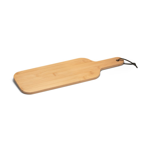 Product Description: Bamboo tray ideal for serving snacks with string for hanging. Supplied in cardboard sleeve. As the product is made from natural materials, the colour and the printing result may vary between products. 405 x 134 x 10 mm | Sleeve: 260 x 135 x 10 mm
